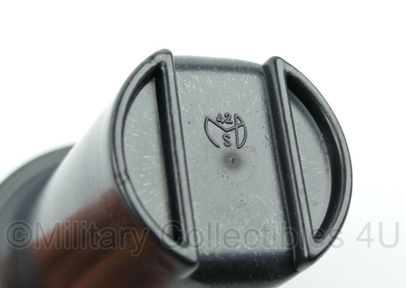 Article number: 18231500 TS. A1-6.3.4 + brs krtHet gat hier om een prachtige replica van de wo2 Duitse bakeliete veldfles beker. Het materiaal van deze beker is dik kunststof, wat er perfect op lijkt. Op de foto zie je ter vergelijk een originele beker naast een replica beker. De beker is zelfs voorzien van een nagemaakte bakelietstempel.