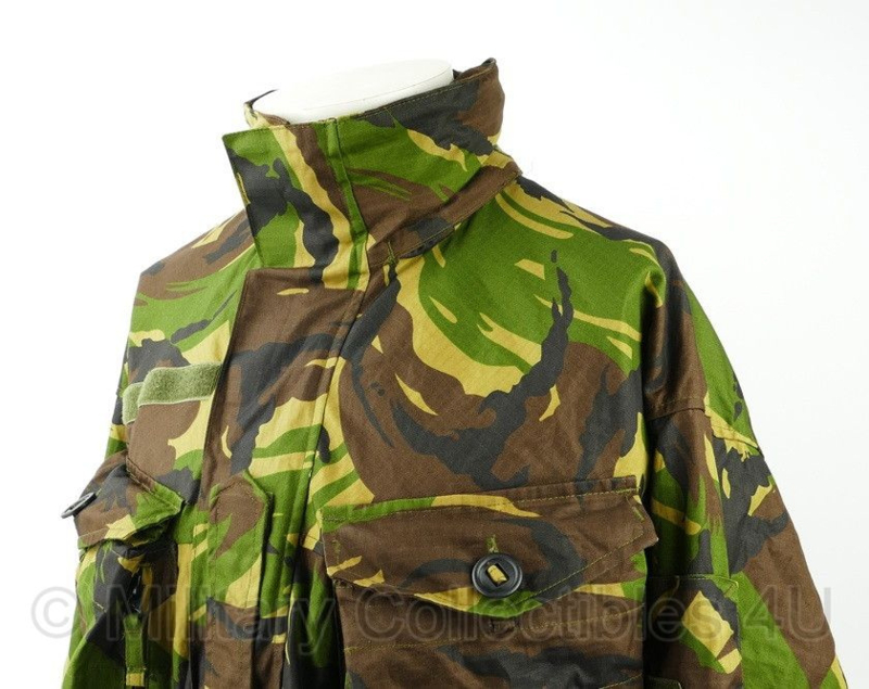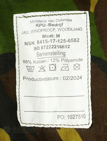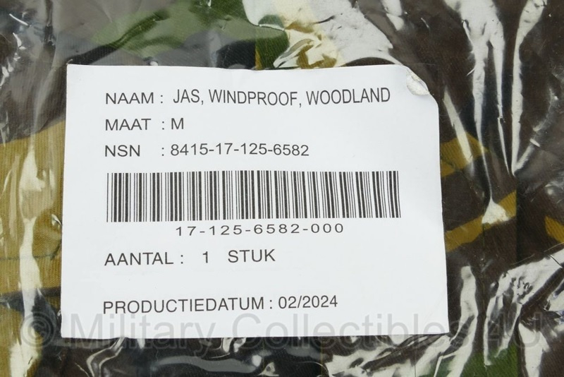 Dit is een originele windproof jas in woodland camo van de Koninklijke Landmacht.