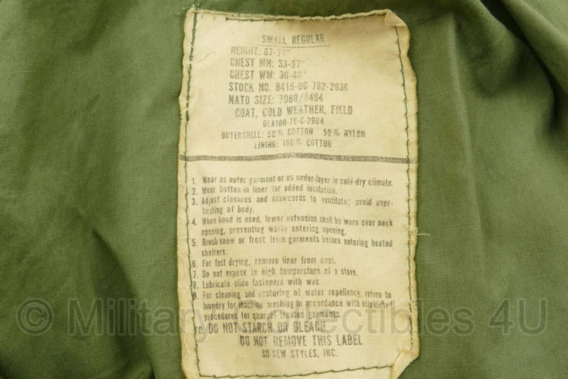 US Army M65 cold weather coat 1979 M65 parka groen- maat Small Regular - gedragen - origineel