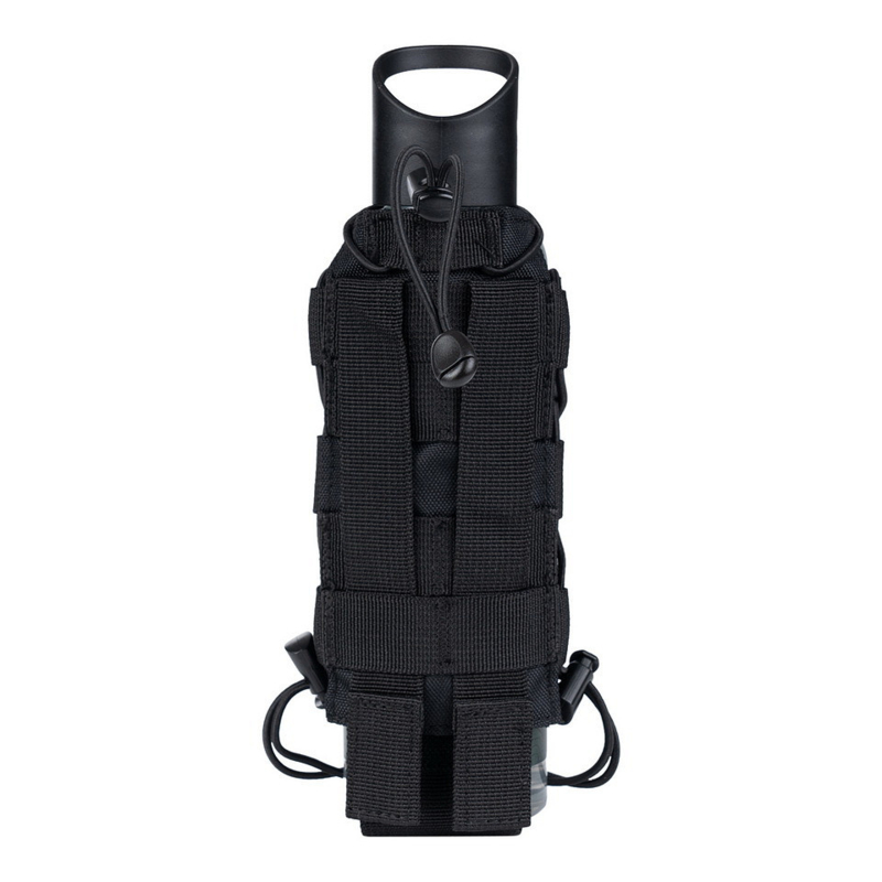 Elastic cords and adjustable straps hold the bottle securely in place, while the open top allows for quick access. Ideal for hiking, camping, survival, airsoft, military applications, or EDC use.