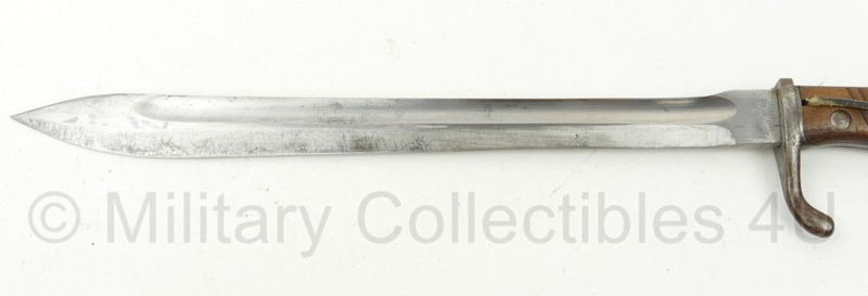 Dit is een originele bajonet voor de G98 met originele metalen schede van het Duitse leger uit WO1. Deze bajonet is gemaakt door Anker Werke Bielefeld.