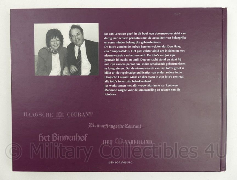 Dit is een origineel boek genaamd "Den Haag rampenstad? Bij nacht en ontij". Dit boek is een verzameling van 30 jaar persfoto's gemaakt door Jos van Leeuwen met teksten geschreven door zijn vrouw Marianne van Leeuwen, uitgebracht in 1998.