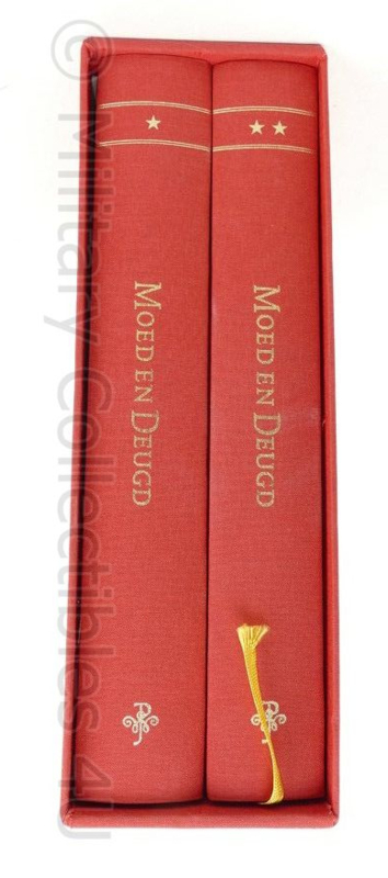 Dit is een originele boekenbundel genaamd "Moed en Deugd: Onderscheidingen en ridderorden" geschreven door J.A. van Zelm van Eldik in 2003.