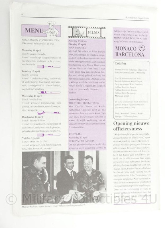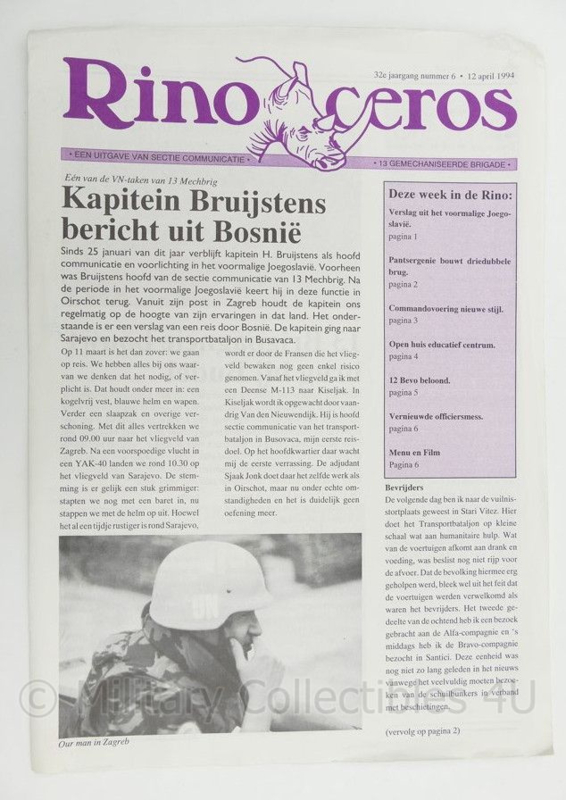 Dit is een origineel krantje van de 13e Gemechaniseerde Brigade genaamd Rinoceros uitegeven op 12 april 1994.