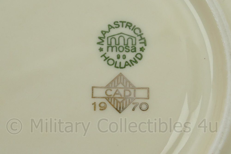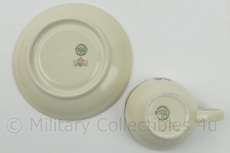 Dit is een origineel kopje met schotel van Defensie, gemaakt door het merk Mosa.