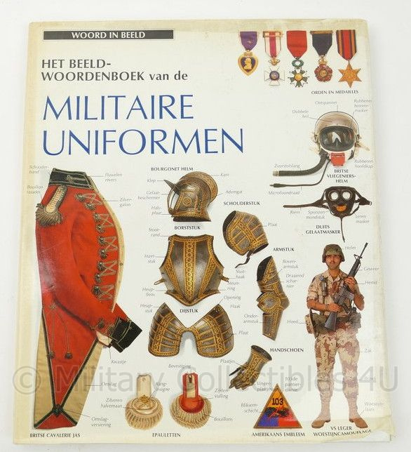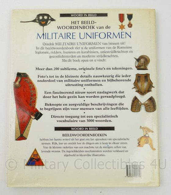 Dit is een boek genaamd "Woord in beeld: Het beeldwoordenboek van de militaire uniformen".