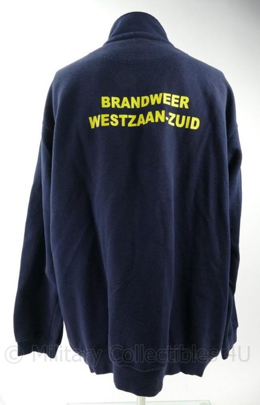 Dit is een trui met hoge kraag en rits van de Brandweer Westzaan-Zuid.