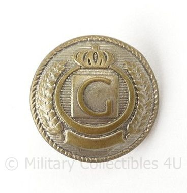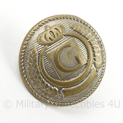 Dit is 1 originele vintage knoop met hierop een G met een kroon en krans afgebeeld.
