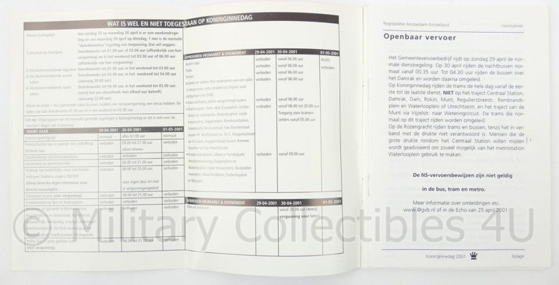 Dit is een originele boekje voor de poltie voor Koninginnedag 2001.