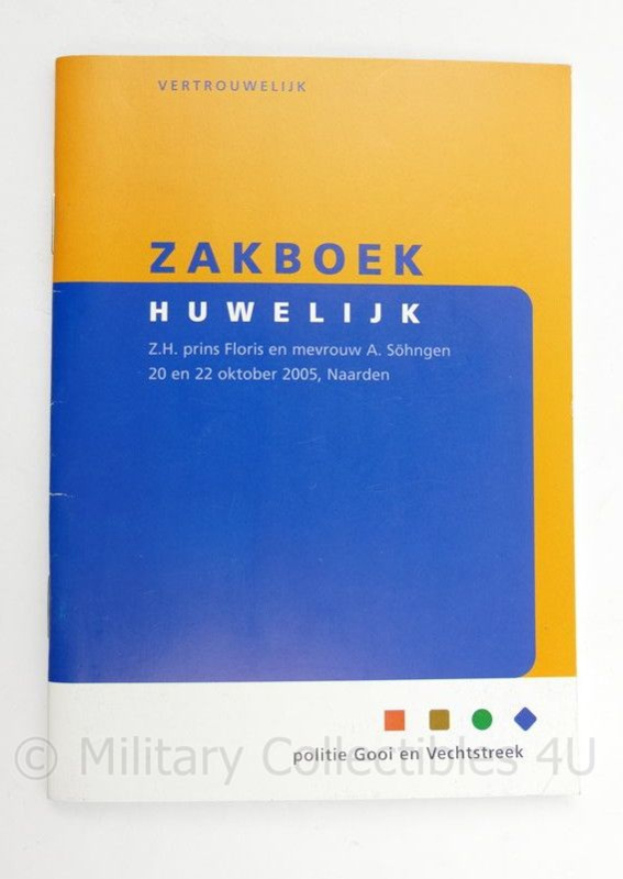 Dit is een originele zakboekje voor de poltie Gooi en Vechtstreek voor het huwelijk van prins Floris met prinses Aimée in 2005.