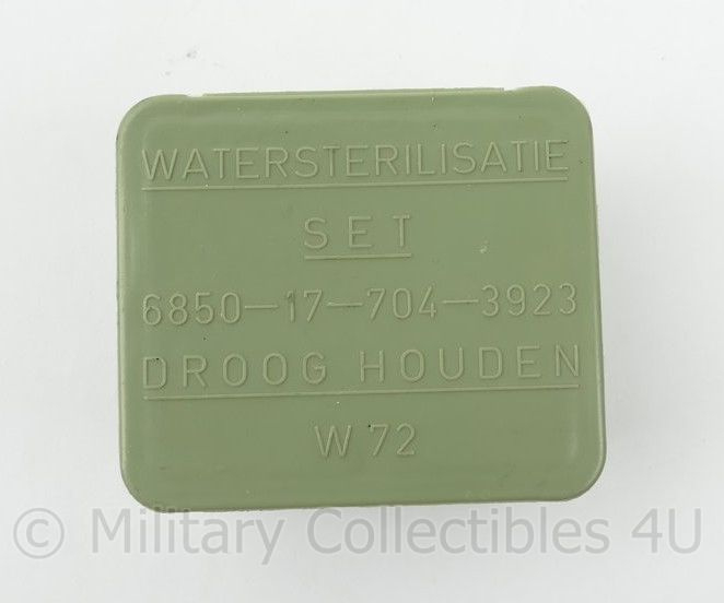 Dit is een originele W72 watersterilisatie set met thio- en chloortabletten van de Koninklijke Landmacht.