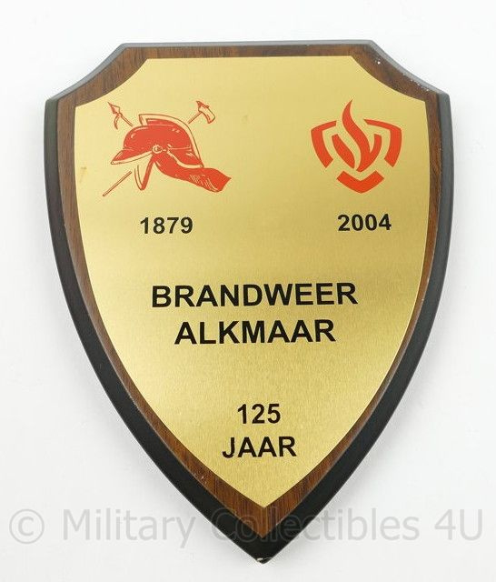 Wandbord Brandweer Alkmaar 1879-2004 125 jaar - 18½ x 15 x 1½ cm - origineel