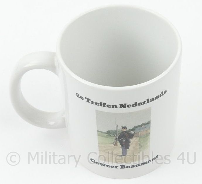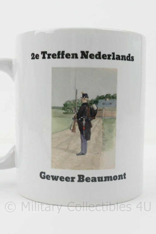 Dit is een originele mok van het 2e treffen Nederlands Geweer Beaumont. Dit is een jaarlijks schutterstoernooi dat vanaf 2019 wordt georganiseerd door S.V. Dutch Muzzleloaders waar men gebruik maakt van het Beaumontgeweer, een wapen ontwikkeld in 1860 door de Maastrichtse Edouard de Beaumont.