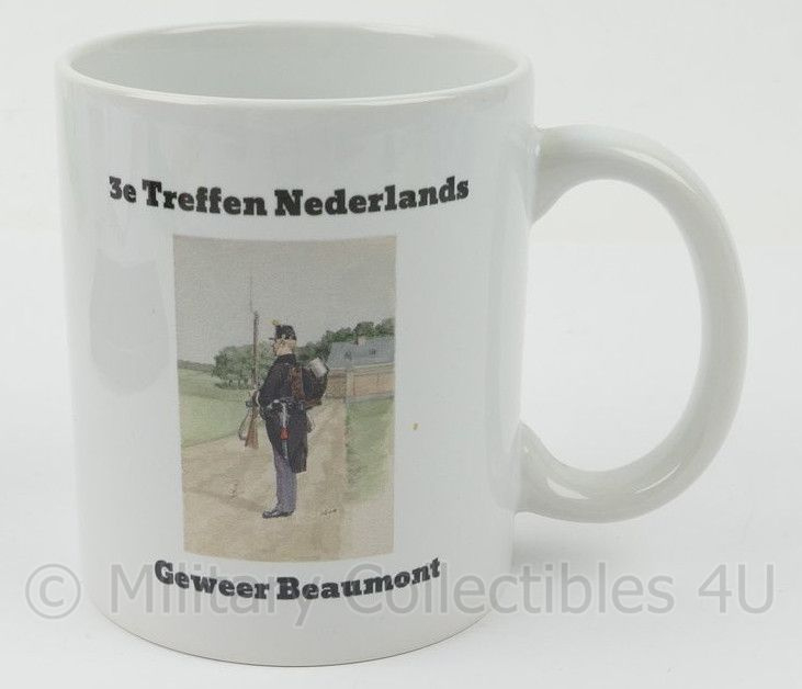 Dit is een originele mok van het 3e treffen Nederlands Geweer Beaumont. Dit is een jaarlijks schutterstoernooi dat vanaf 2019 wordt georganiseerd door S.V. Dutch Muzzleloaders waar men gebruik maakt van het Beaumontgeweer, een wapen ontwikkeld in 1860 door de Maastrichtse Edouard de Beaumont.
