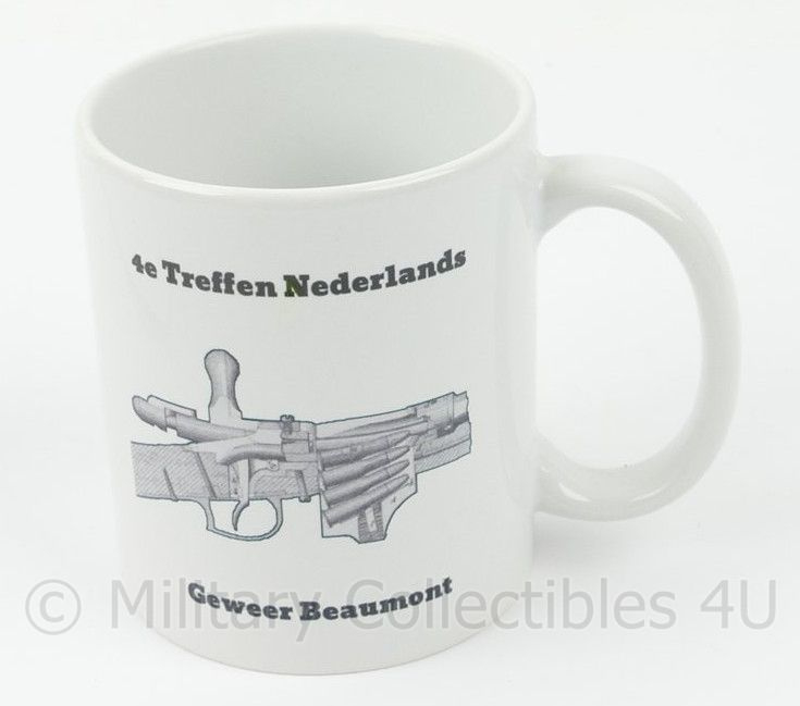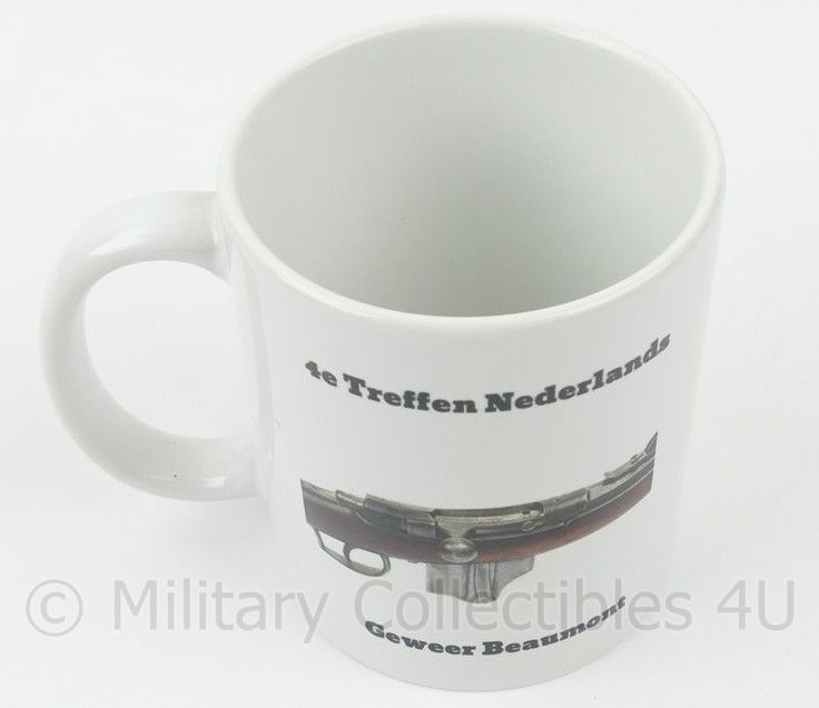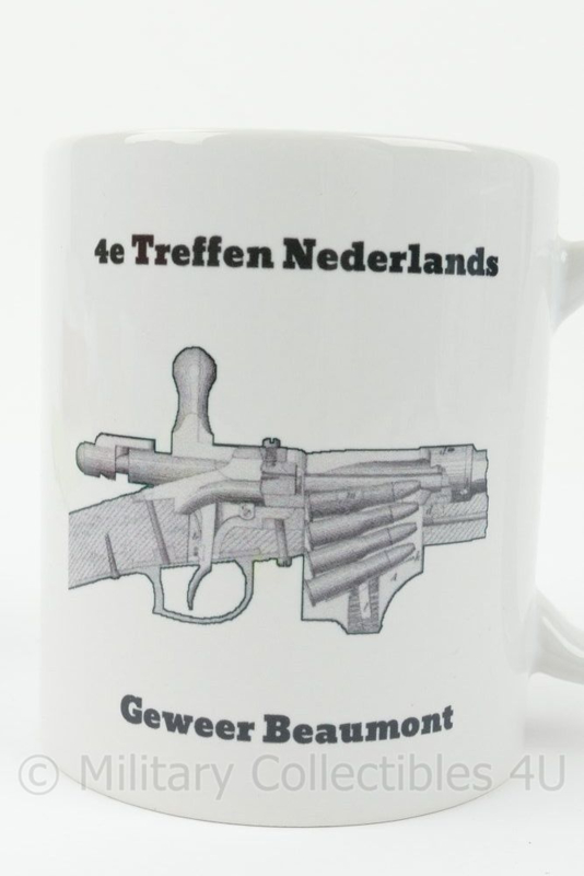 Dit is een originele mok van het 4e treffen Nederlands Geweer Beaumont. Dit is een jaarlijks schutterstoernooi dat vanaf 2019 wordt georganiseerd door S.V. Dutch Muzzleloaders waar men gebruik maakt van het Beaumontgeweer, een wapen ontwikkeld in 1860 door de Maastrichtse Edouard de Beaumont.