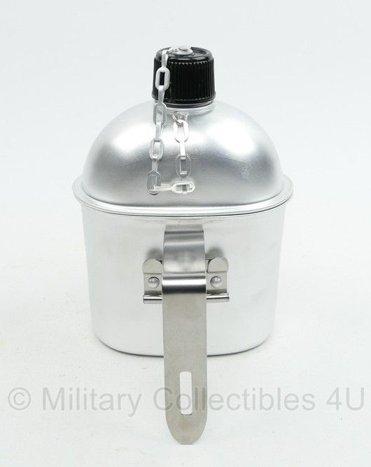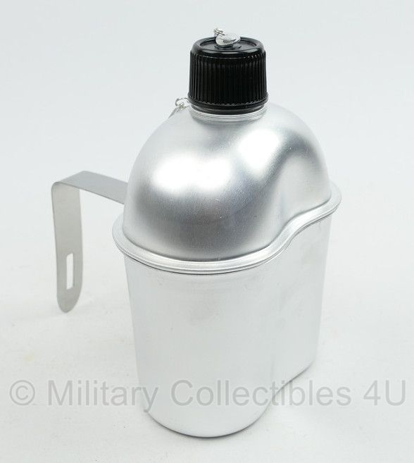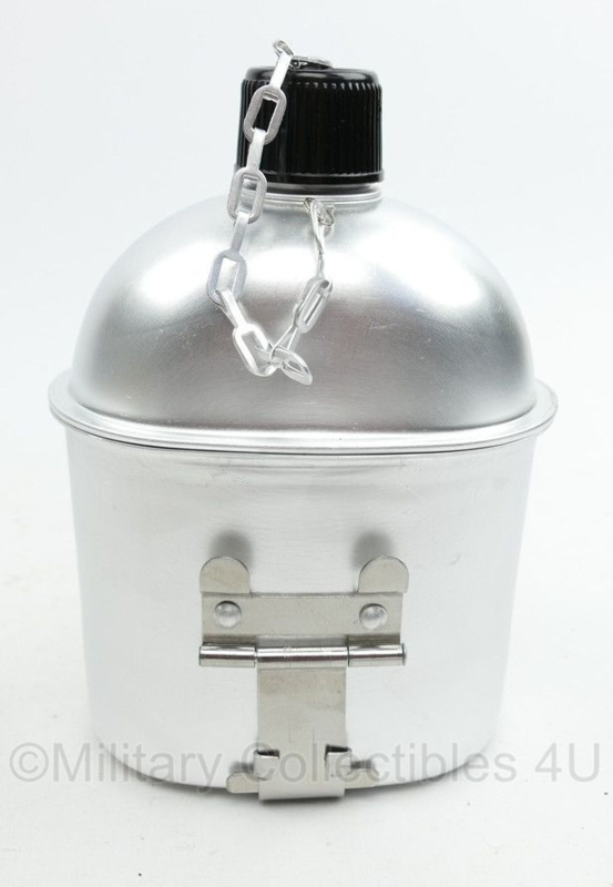 Article number: 18625100 TS. A2-1.0.1 + A2-1.0.2Dit is een replica alluminium US veldfles met beker. Deze zijn ideaal omdat je er tenminste uit kunt drinken.