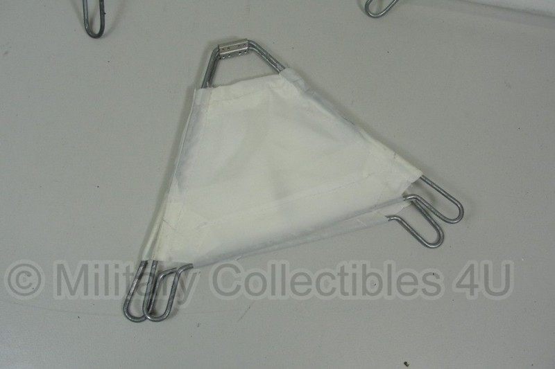 Dit is 1 net naoorlogse Mine marking Triangle. Het is een opvouwbaar en uitklapbaar metalen frame met stoffen bekleding die over mijnen werden geplaatst zodra die gevonden was.