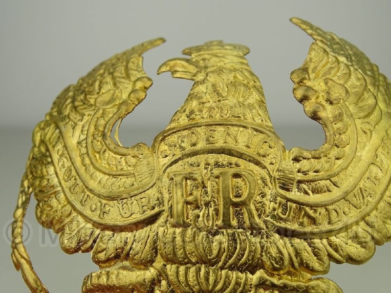 Dit is een erg mooi nagemaakte helmplaat voor een Pruisische Pickelhaube. Je drukt hem op het laatste moment om de helm en dan sluit hij mooi aan.