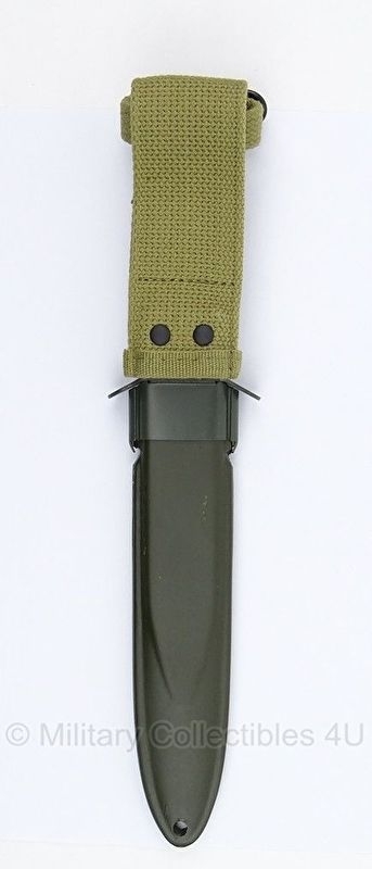 Het gaat hier om een mooie replica US m8 schede. Deze schede past zowel op de M3 messen als op de M1 Carbine messen. Dit model schede kan je om de koppel schuiven.