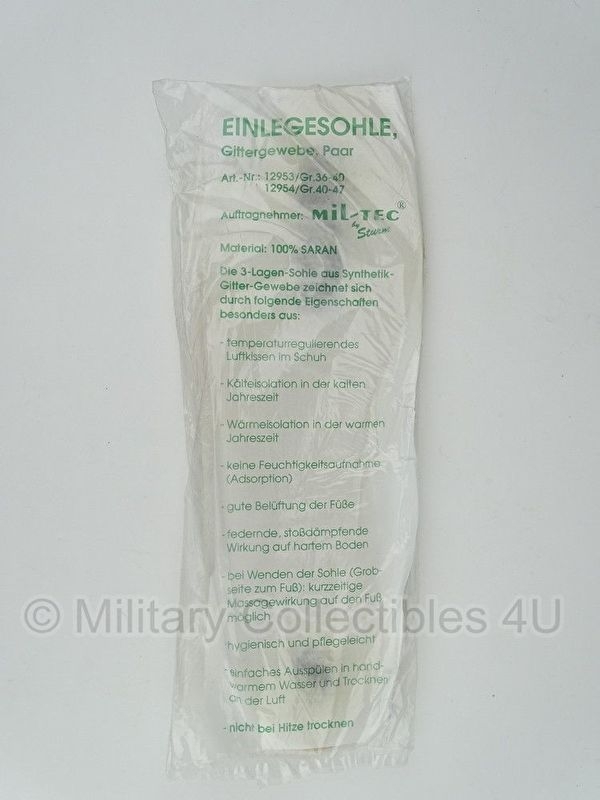 Dit is 1 paar ongebruikte Nederlandse leger inlegzolen. Ze zitten deels in een Duitse verpakking, maar dat zal zijn omdat ze aan Duitsland geleverd zijn. Het zijn gewoon Nederlandse leger inlegzolen. (er staat ook "boven"op. )