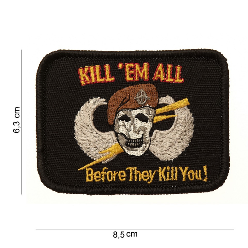Embleem Kill 'em All - zonder klitteband - stof - 8,5 x 6,3 cm.