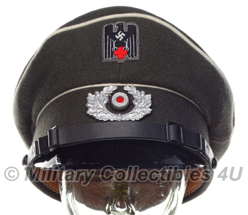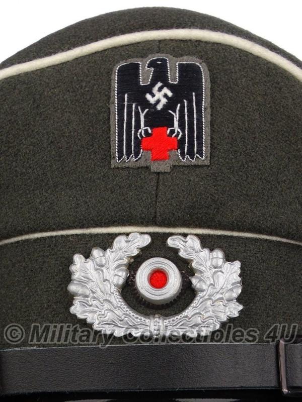 Dit is een replica WO2 Duitse DRK pet. Hij is exact nagemaakt. Het insigne is met de hand gestikt en de pet heeft een luxe en zelfs gestempelde voering.