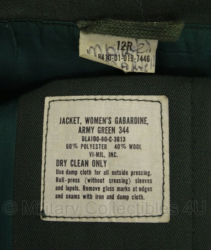 Dit is een orignele US Army Class A jas voor dames met patches. Deze jas is gedragen, maar in een hele goede staat. De jas heeft gouden knopen, een Spearhead 3rd armourd division embleem en op beide mouwen de rang van Specialist. De maat van de jas is 12R.