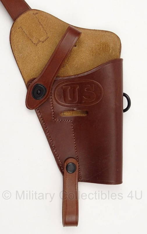 Article number: 04.05.01.061 qm . A2-2.9.1Dit is een replica US M3 schouderholster van de beste kwaliteit. Hij is van mooi donkerbruin leer nagemaakt.