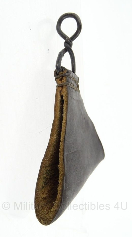 Dit is een originele Franse zwarte lederen koppel driehoek van het Franse leger. Hij is in een goede staat. Je schoof hem om de koppel en aan de haak koppelde je dan het draagstel.