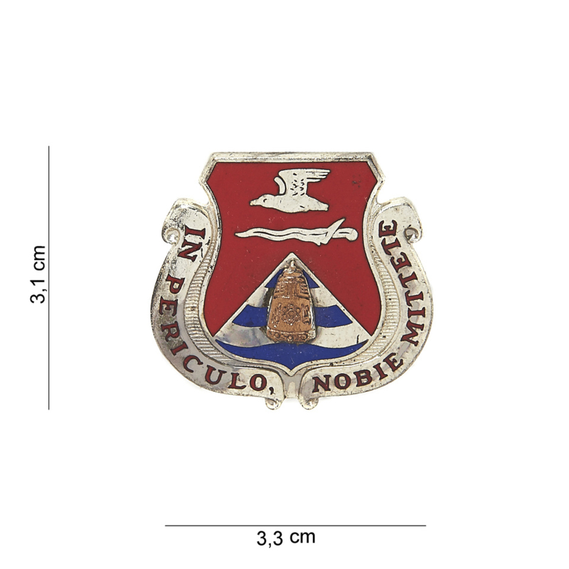 US Army Infantry Regiment ''In Periculo Nobie Mittete'' unit crest metaal - 3,1 x 3,3 cm - maker Meyer - origineel