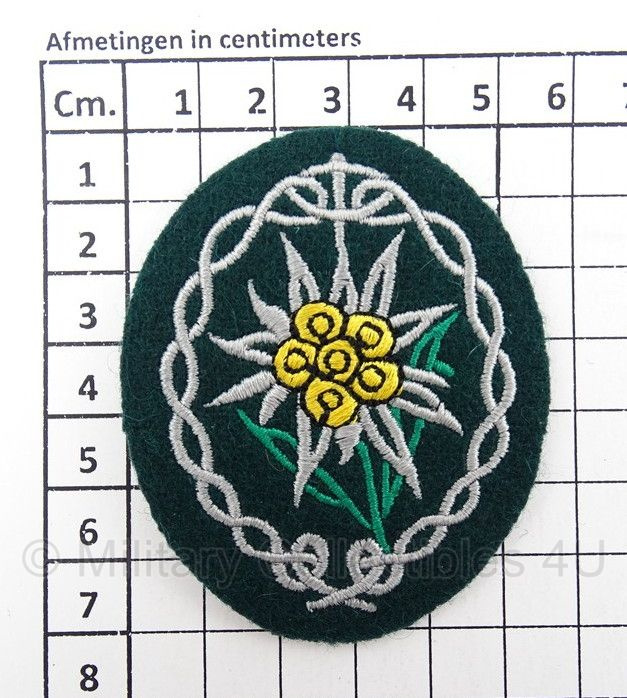 Gebirgsjäger pet edelweiss metaal (donker)Het gaat hier om een replica Edelweiss die op de M43 pet werd gedragen door Gebirgsjägers.