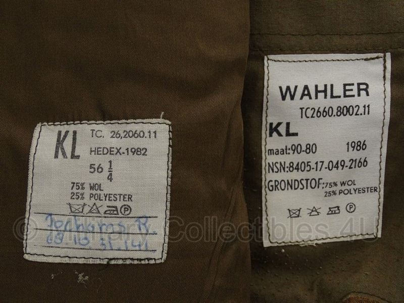 KL DT jas en broek set rang Sergeant - 1986 - maat Jas 56K en broek 94-80 cm. - origineel
