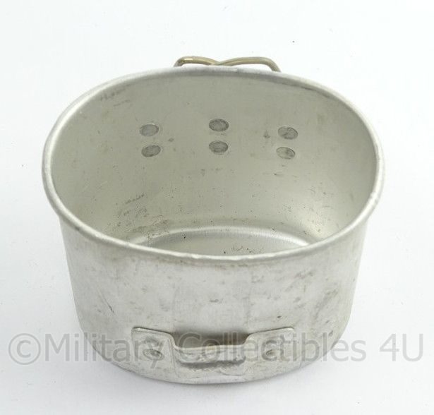 Etensblik aluminium - WO2 model - feldgrau - origineelDit is een net naoorlogs metalen etensblik met draagstel, maar het model is exact gelijk aan de oorlogse etensblikken. Je kunt hem ook gewoon nog gebruiken.