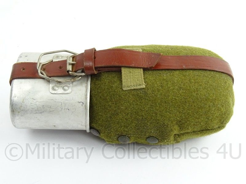 Article number: 91451530 TS. A3-1.5.2Dit is een WO2 Duits model veldfles, met beker en hoes. De hoes is middels drukknopen te sluiten. Het is een model van na de oorlog. De vorm is iets anders, maar hij is goed te gebruiken.