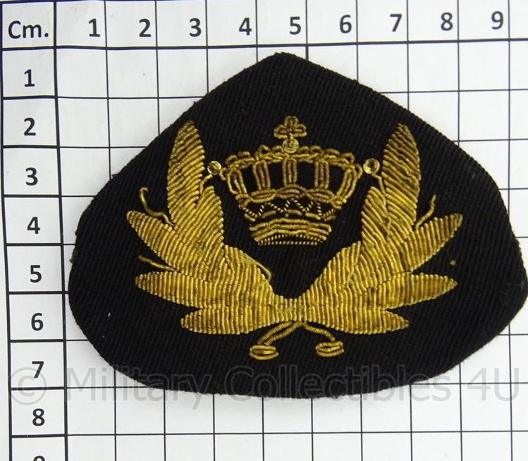 Dit is een origineel pet embleem met een kroon op e voorzijde.