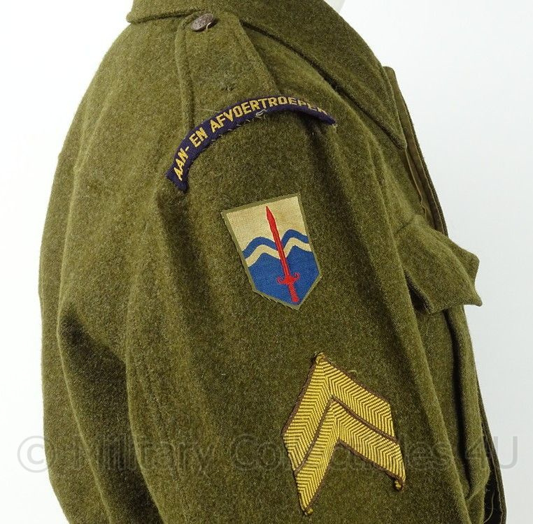 MVO Ministerie van Oorlog jasje Aan en Afvoer troepen - rang Korporaal 1e klasse - maat 48 1/4 - origineel
