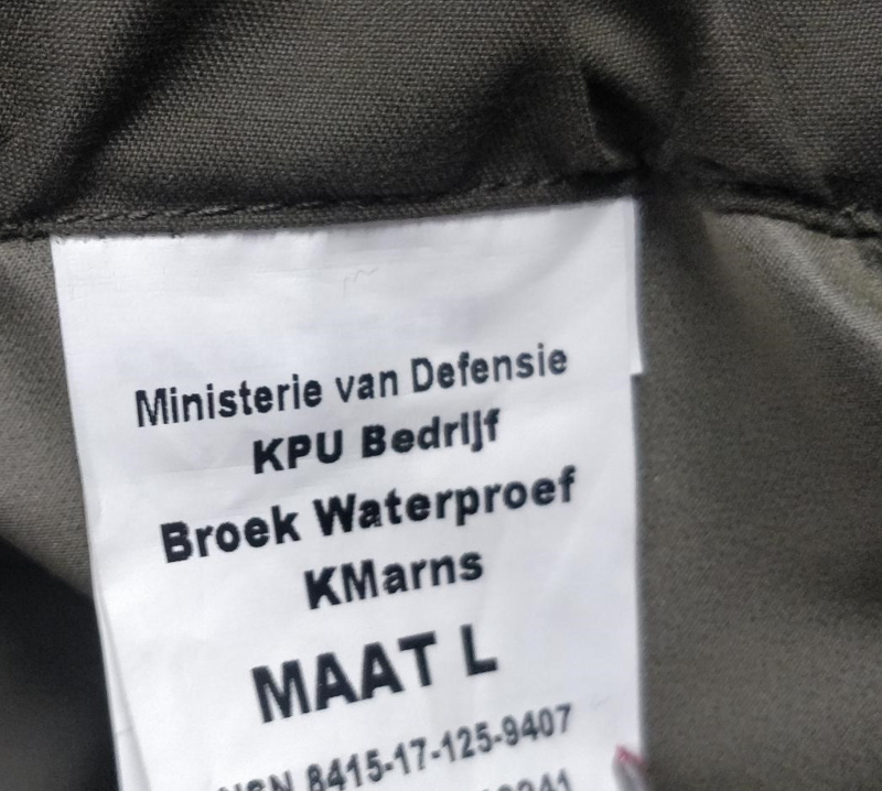 Dit is een originele Carinthia Gore-Tex waterproof regenbroek van het Korps Mariniers. Hij is nieuw en zit in de originele opbergtas.