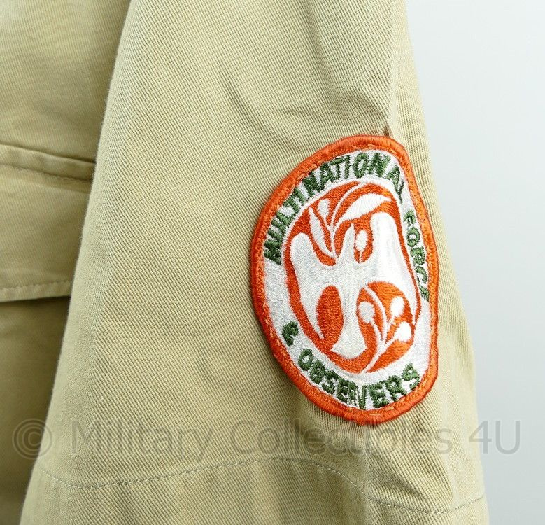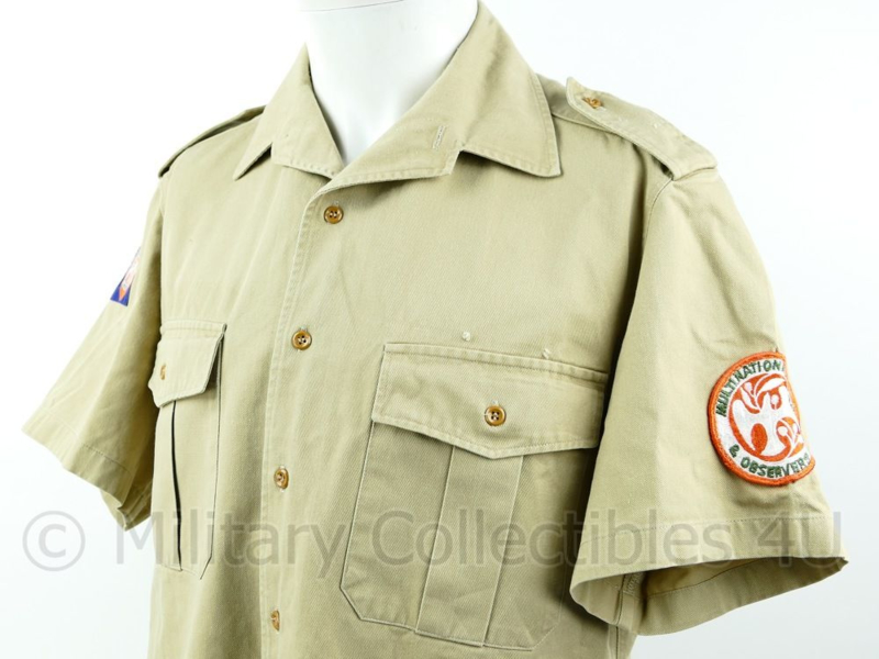Het gaat hier om een volledig origineel overhemd met lange broek van het Nederlandse leger. De set is verstrekt voor de missie in de Sinai woestijn. Het overhemd beschikt nog over de bijbehorende emblemen. De set is zo ingeruild van een veteraan.