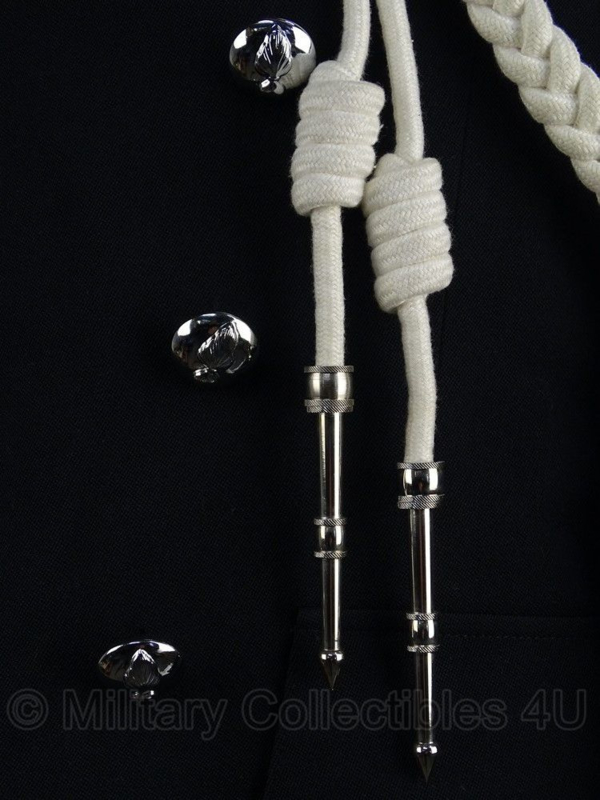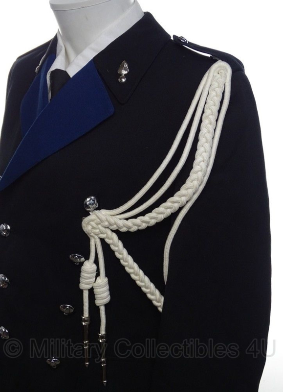 Dit is een originele KMAR Koninklijke Marechaussee uniform jas met bijbehorend overhemd en stropdas. De jas is uitgerust met kraagspiegels en een wit paradekoord. De set is gedragen, maar in een goede en bruikbare staat.