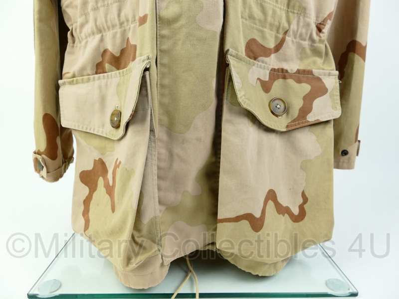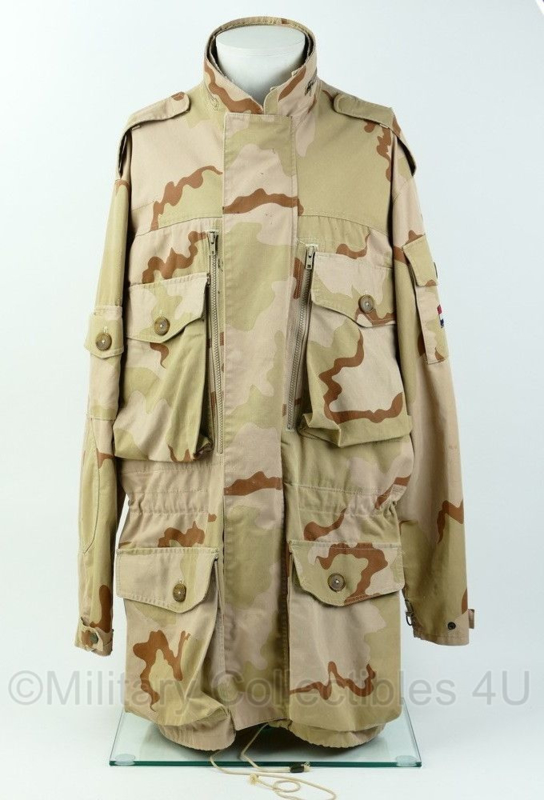 Dit is een originele smock parka met desert camo van het Nederlandse Leger. Het is zeg maar het oude model parka, maar dan het de zakken van de nieuwere smock jassen.