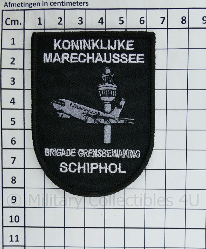 KMAR Koninklijke Marechaussee Brigade Grensbewaking Schiphol embleem - met klittenband - 8 x 6 cm