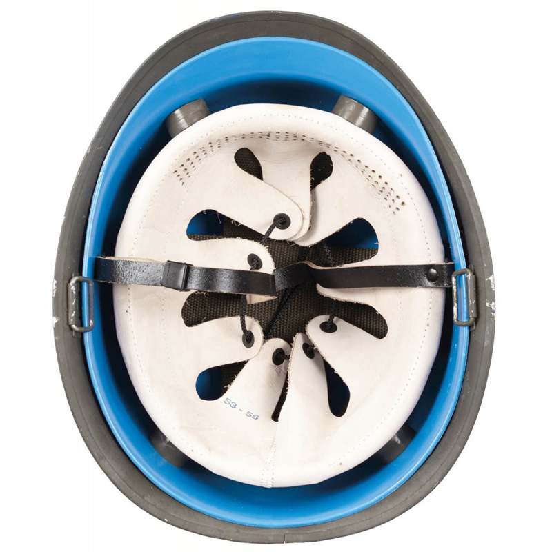 Dit is een originele M1 helm van het Oostenrijkse leger. Er zit een binnenhelm in van kunststof. De helm is blauw van kleur en hij is in een zeer goede staat. De maat is verstelbaar.