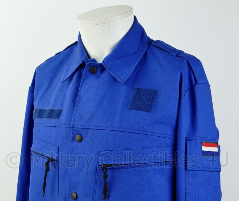 Dit is een originele basisjas van de Nederlandse burger in Defensie. De jas heeft een Nederlandse vlag op de linkermouw.