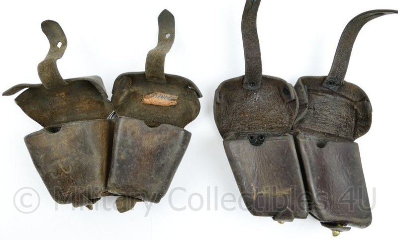 Wo2 Steyr M95 Mannlicher Oostenrijks Duits patroontassen paar - donkerbruin leer - gedateerd 1930 - 17 x 9 x 5 cm - origineel