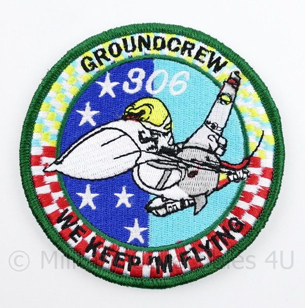 KLu Koninklijke Luchtmacht embleem Groundcrew 306 squadron We Keep 'M Flying - met klittenband - 9 cm. diameterDit is een nieuw gemaakt KLu Koninklijke Luchtmacht embleem .