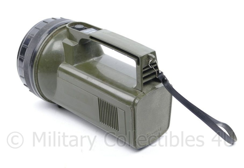 Dit is een originele zaklamp van Defensie. De powerlite EH 996. De afmeting is ongeveer 11,5 x 11 x 12 cm (lxbxh)