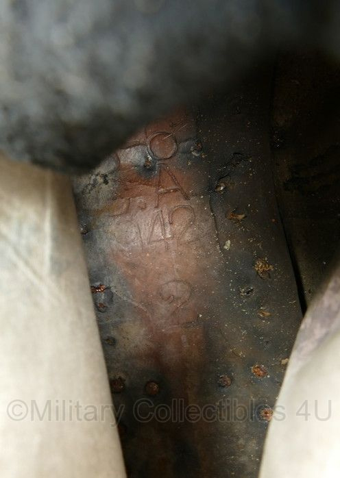 Dit is een originele oorlogse schoenen, in normale gebruikte staat. De schoen is van echt leder gemaakt. Ze zijn binnenin gestempeld op de bodem. Dit is het model uit de oorlog. Ze zijn begin jaren 50 voorzien van een nieuwe rubberen zool.