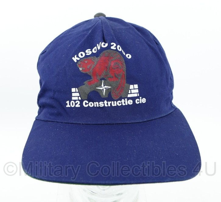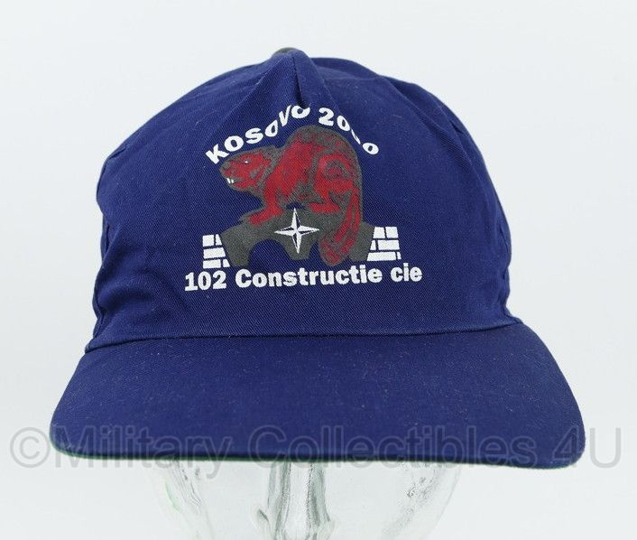 Dit is een originele Baseball cap van de 102 Constructie Cie in Kosovo in 2000. De maat is one size, hij is verstelbaar aan de achterzijde van de pet.