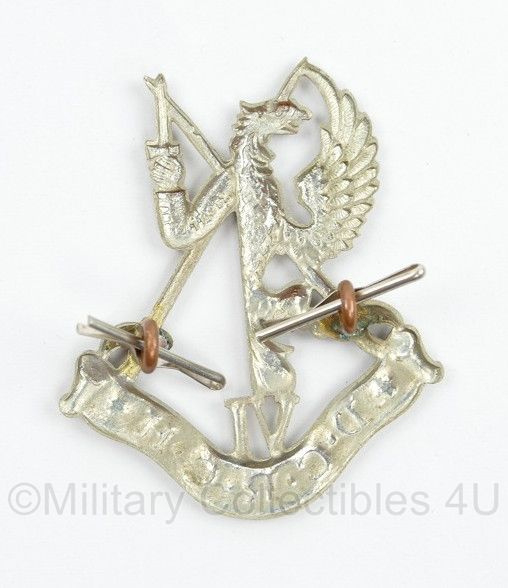 Dit is een originele cap badge. De afmeting is ongeveer 5,5 x 4 cm (lxb).