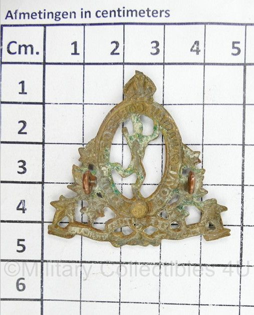 Dit is een originele cap badge. De afmeting is ongeveer 4,5 x 4 cm (lxb).